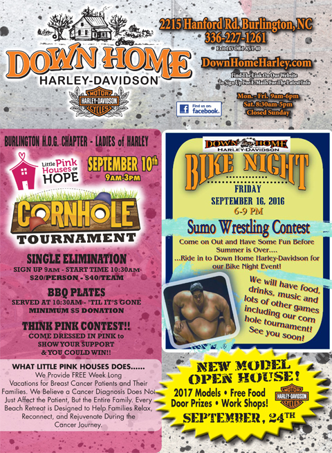 Claim this business 336 227-1261. Down Home Harley-Davidson location at 2215 Hanford Road Burlington NC 27215. Down Home North Carolina is building power with rural working people in North Carolinas small towns and rural communities.